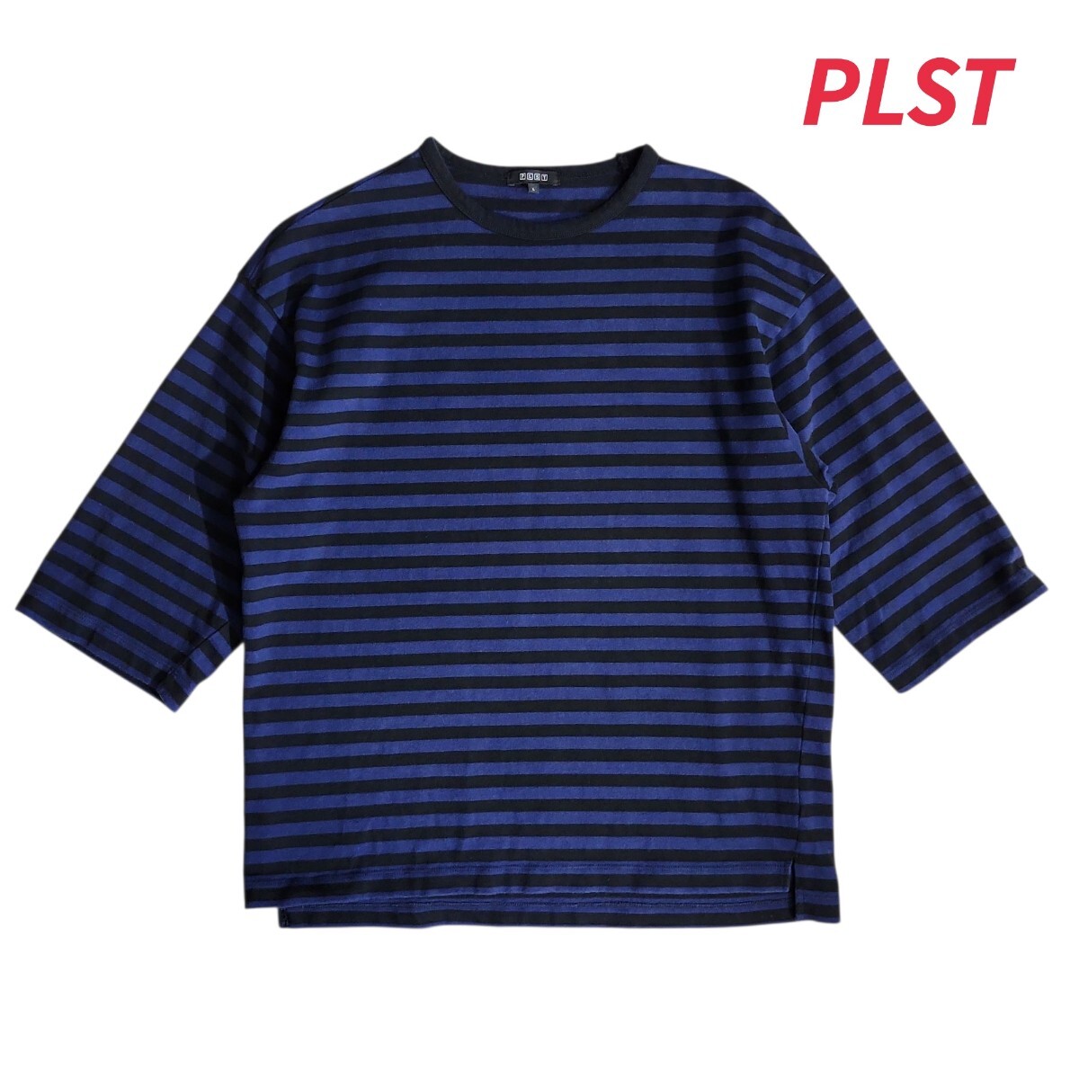 - PLST 厚手 ゆったりデザイン 綿100% ボーダー柄 長袖カットソー 表記L ネイビー&黒 ロングTシャツ 68544