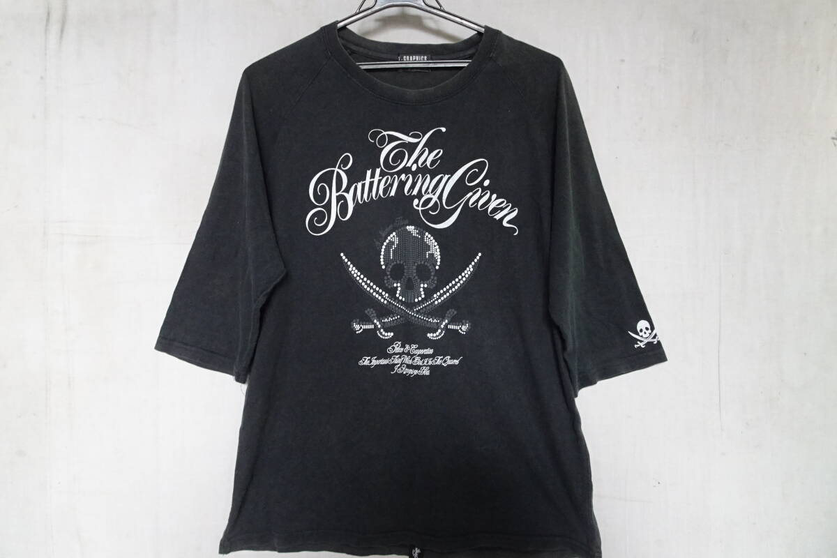 > T-GRAPHICS/5分袖Tシャツ/カットソー/フロントプリント/ドクロ/スカル/ラグラン袖/黒/ブラック/XLサイズ(6/12R7)