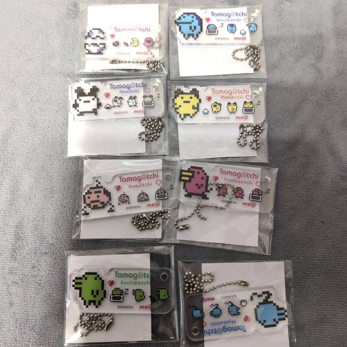 - 全8種 コンプリート たまごっち コラボセット アクリルチャーム 明治フルーツ・明治いちご