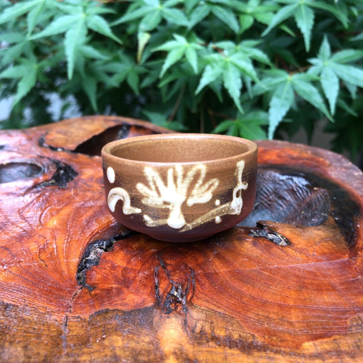 - 有田焼 丁子茶色 唐花 猪口★盃 杯 酒器 晩酌 ぐい呑 古民家 粋 レトロ 風雅 膳 風流 風情 数奇 吉祥 縁起 侘び寂び 一位窯 伝統工芸