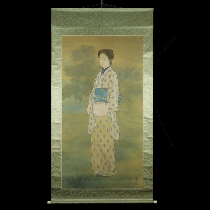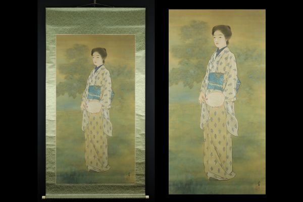 > 61■【真作】坂田 耕雪 美人画 絹本 肉筆 明治時代の日本の浮世絵師 日本画家 月耕に師事 巽画会の会員 掛軸