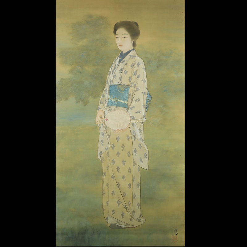 - 61■【真作】坂田 耕雪 美人画 絹本 肉筆 明治時代の日本の浮世絵師 日本画家 月耕に師事 巽画会の会員 掛軸