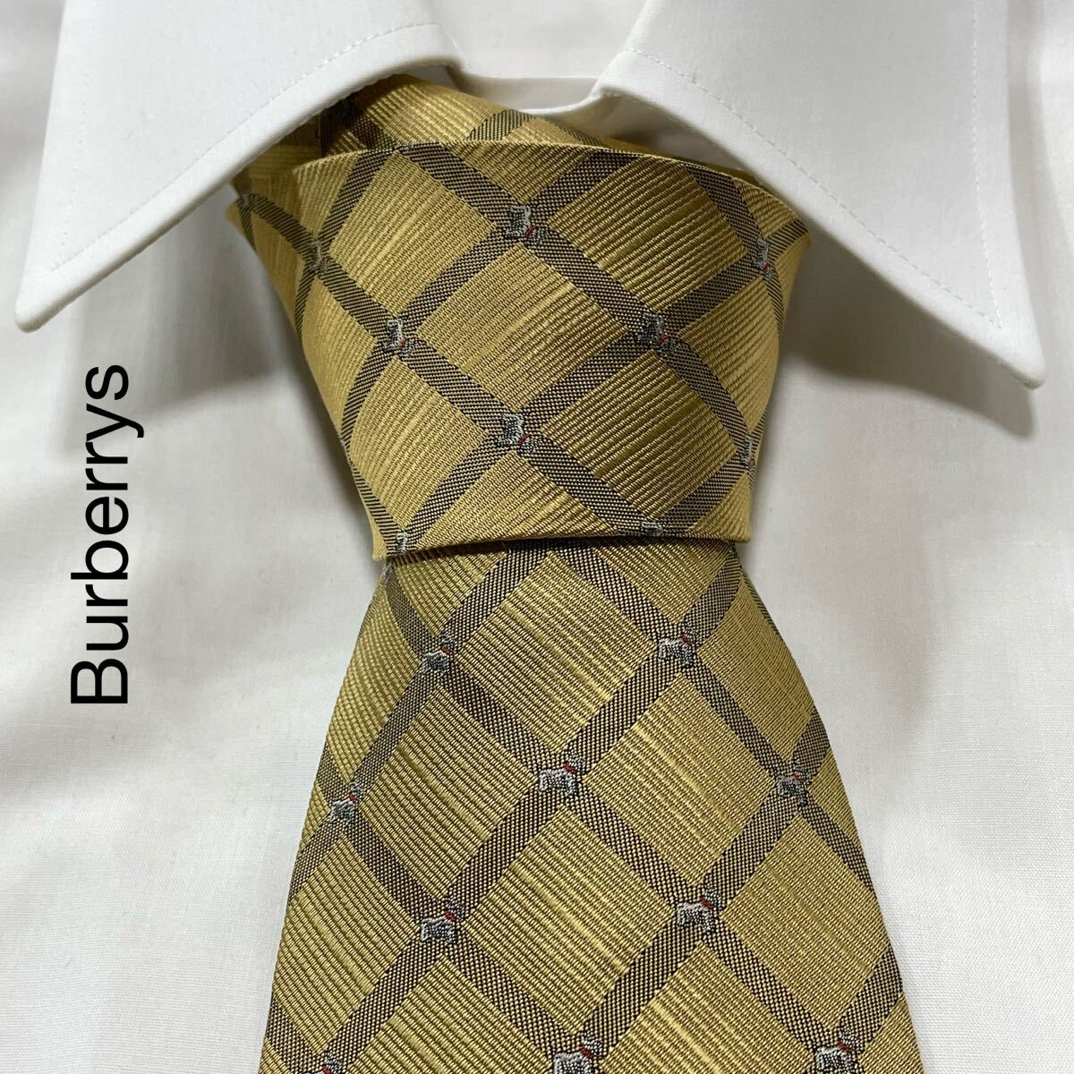 - Burberrys バーバリー ホース 犬 チェック シルク ネクタイ イエロー TG2022
