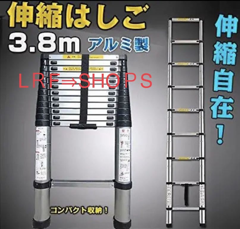 - 伸縮はしご 持ち運びやすい 自動ロック スライド式 アルミ梯子 (3.8M)