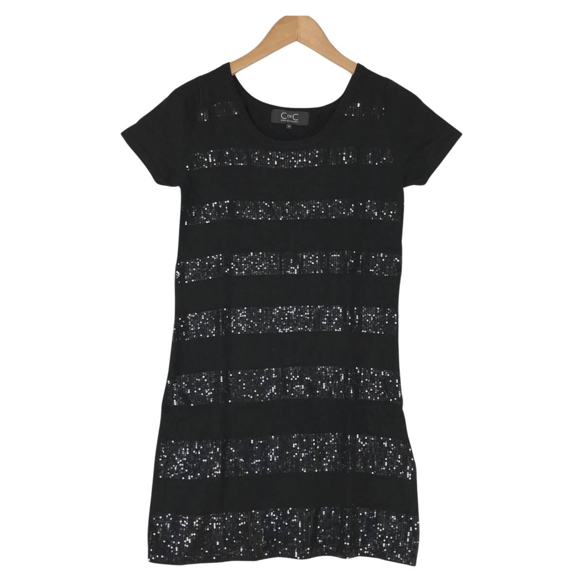- COUP DE CHANCE クード・シャンス スパンコール ボーダー ミニ ニット ワンピース size34/ブラック