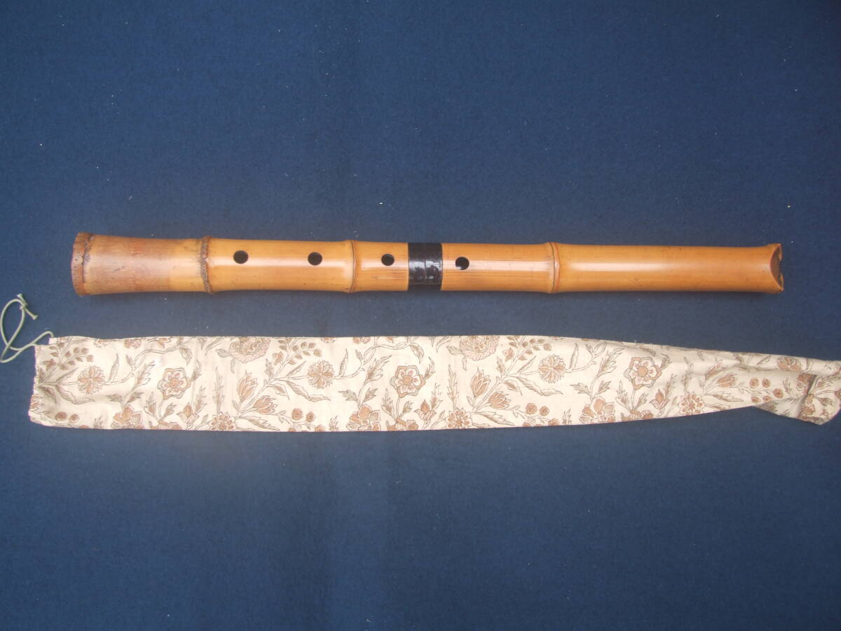 > 尺八 琴古流 ・在銘 去来 二本継ぎ 約54,8cm 和楽器 管楽器 収納袋 良品