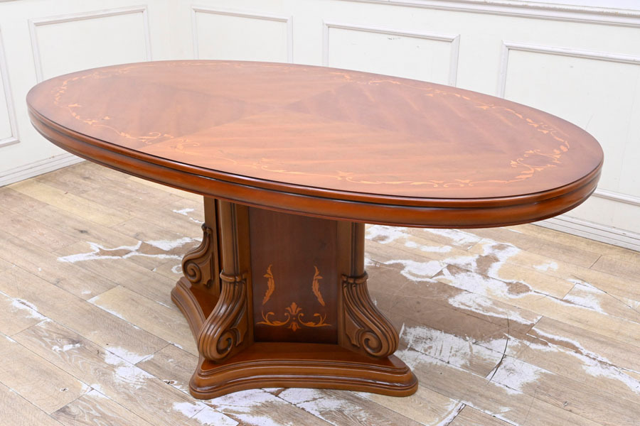 - D101M イタリア製 本象嵌 ロココ調 クラシック ダイニングテーブル 食卓テーブル 食卓机