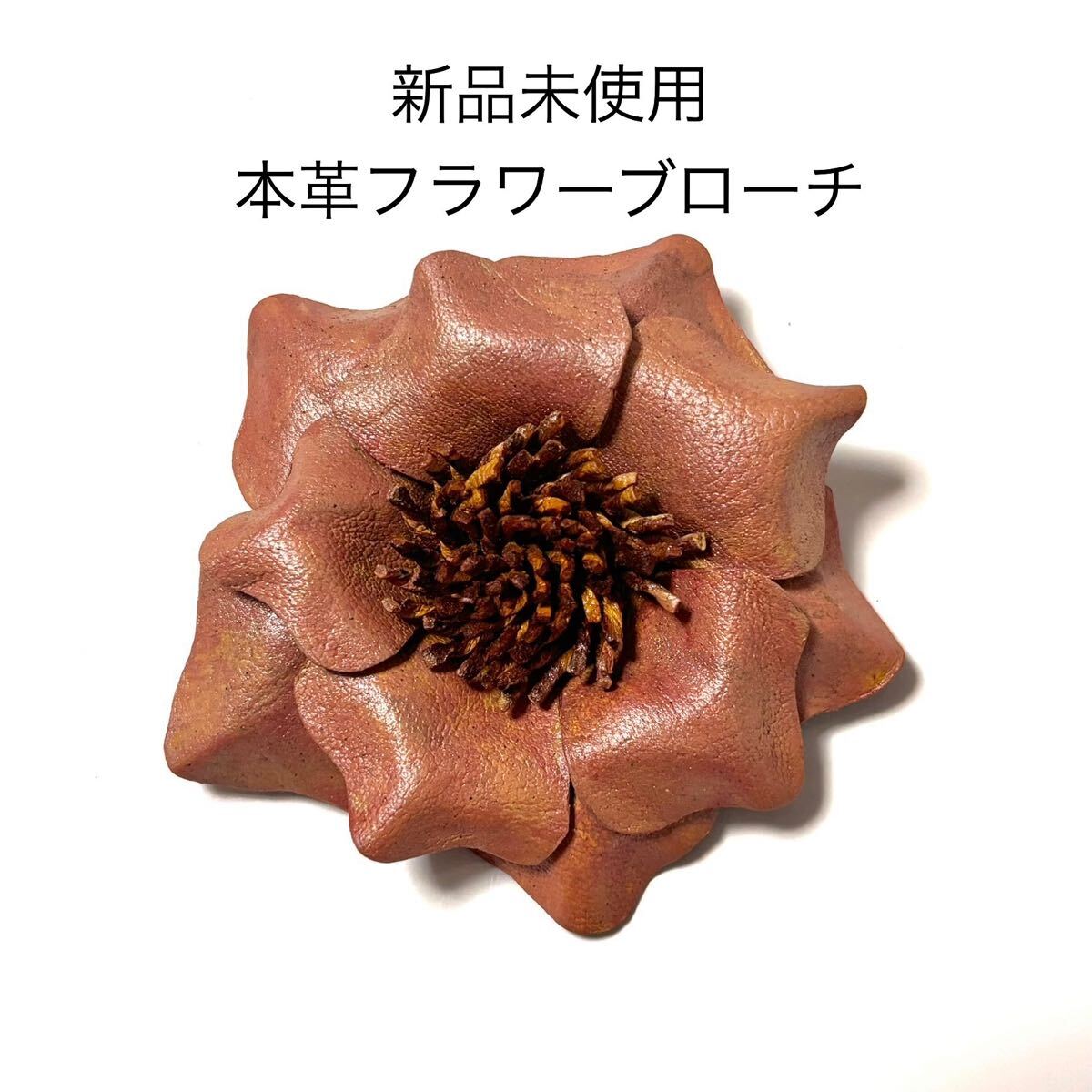- 新品未使用 本革フラワーブローチコサージュ レッドブラウン カメリア 椿 バラ 椿 結婚式 成人式 入学式卒業式 和装 お花 浴衣 帯留 帯飾り