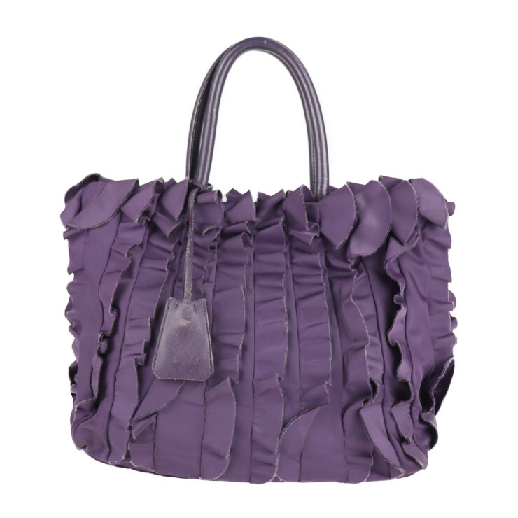 > PRADA プラダ ハンドバッグ BN1728 ナイロン レザー ヴァイオレット ゴールド金具 トートバッグ フリル【本物保証】