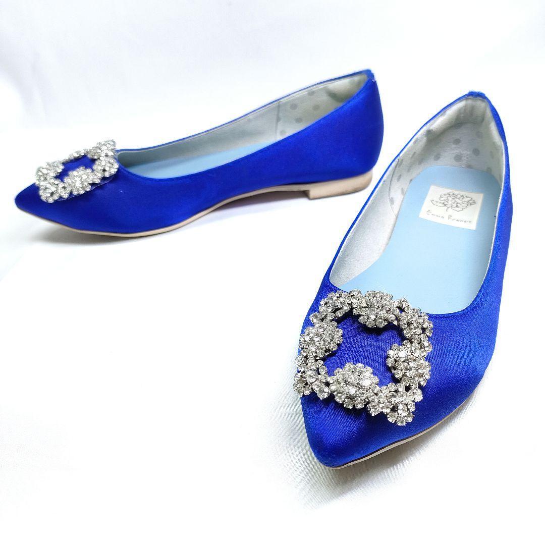 - エマフランシス ポインテッドトゥ フラット ビジューバックル サテンパンプス