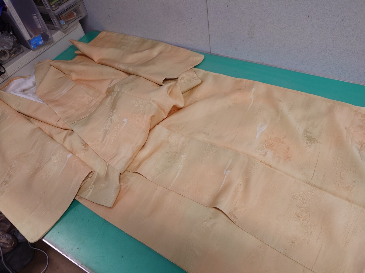 - ●122 丹後ちりめん 織 瑞宝 新装織 絹100% 華やか カラフル くすみカラー ペールオレンジ グラデーション 素敵 柄 着物 ③
