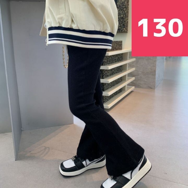 - キッズ フレアパンツ 130 ベビー 子供 バレエ 韓国 リブレギンス 黒
