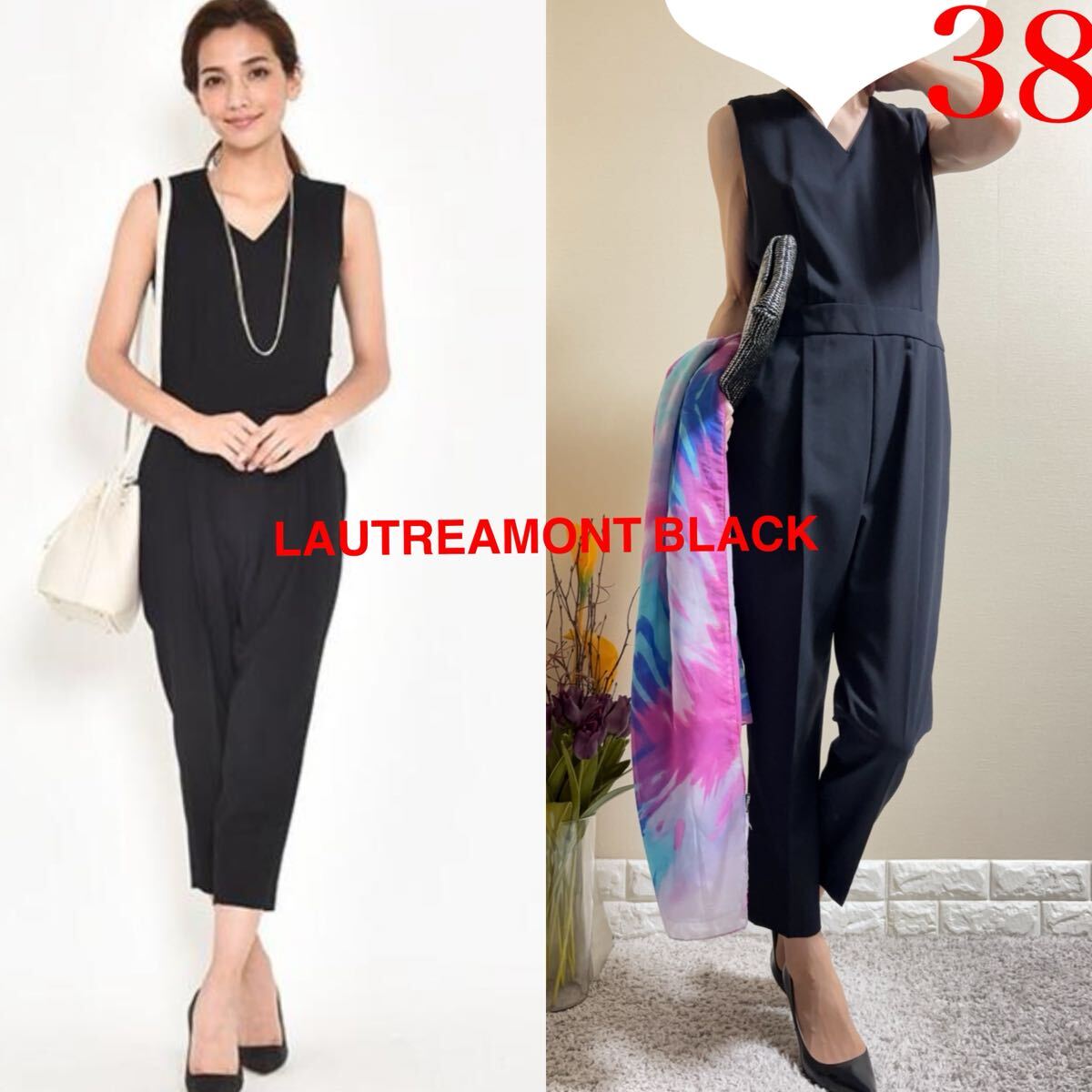 > 極美品!ロートレアモン LAUTREAMONT 定価35,200円 背面レース オールインワン M 38 濃紺 オケージョン 結婚式 二次会 通勤 通年