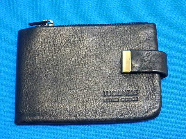 > (nk12-25-0605-1) 二つ折り財布 LUCKINESS LETHER GOODS 小銭入れ シンプル コンパクト 黒 メンズ レザー 男性用 YKKファスナー