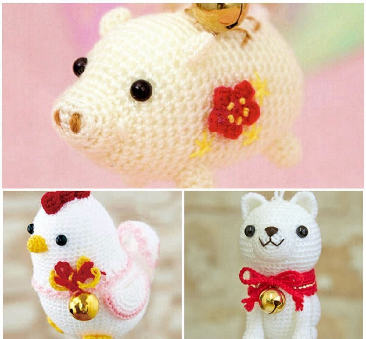 - 残りわずか ハマナカ【3種まとめて】幸せの鈴 手編み 干支 手芸キット ハンドメイド 新品 あみぐるみ とり いぬ いのしし かぎ針編み