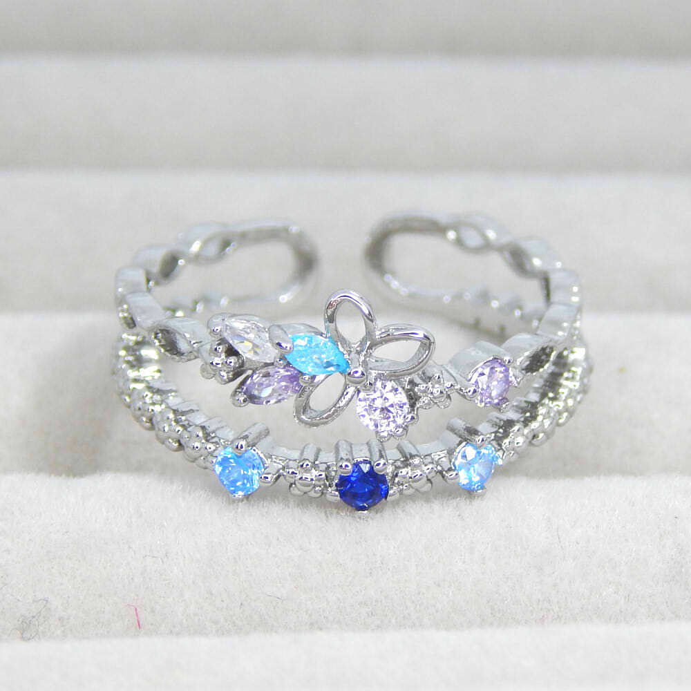 - 再入荷★新品★送料無料 シルバー 小花付き マルチカラー CZダイヤモンドリング フリーサイズ 指輪 レディース アクセサリー ジルコニア