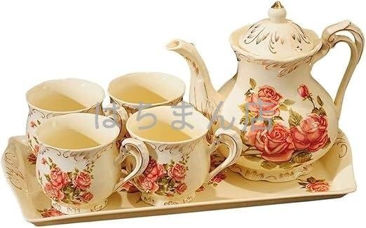 - ティーセット ティーポットセット レッドローズ セラミック ティーセット ヴィンテージ ティーセット ティーポット付き