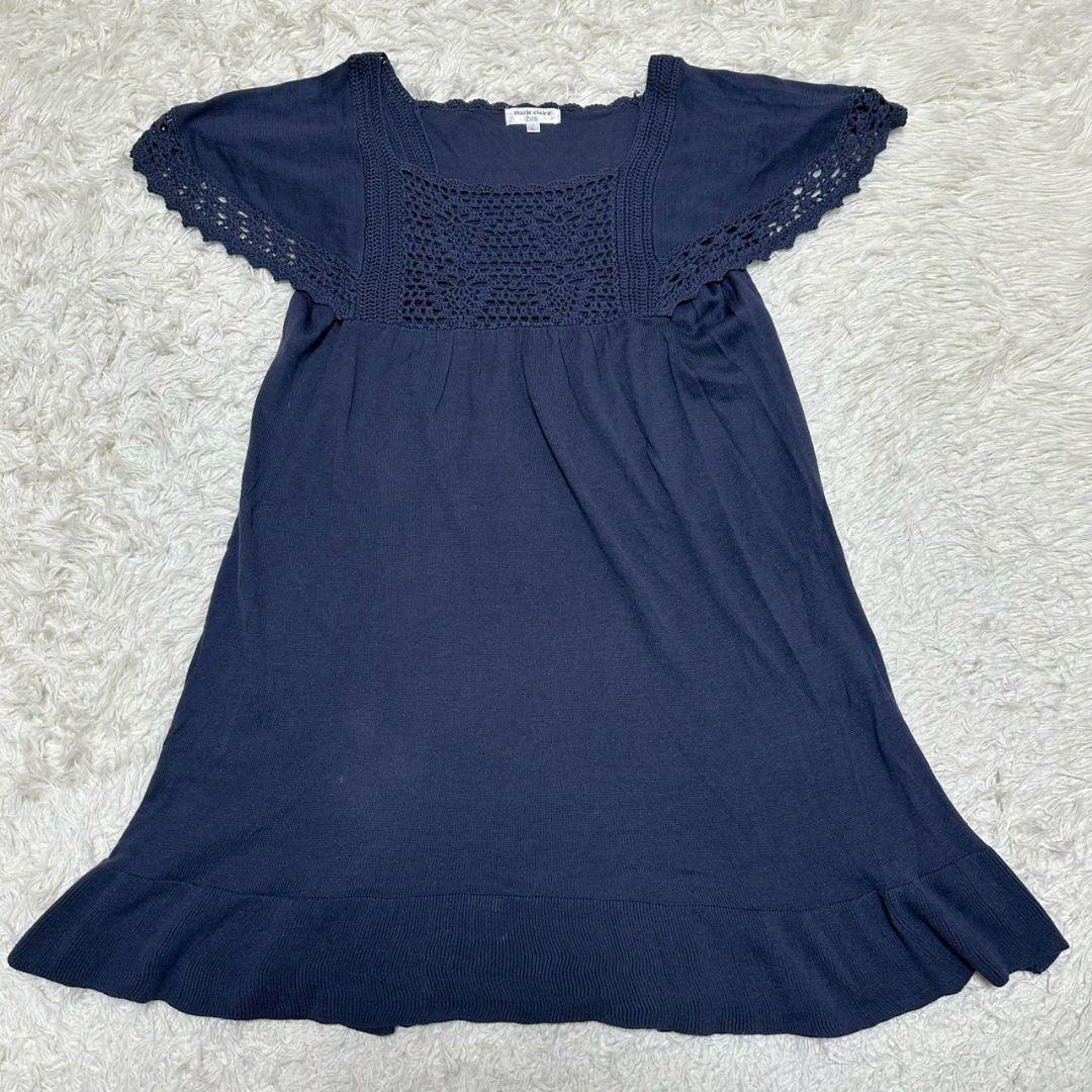 - 【marie claire】/ニットチュニック/(L)/ネイビー/レース/半袖
