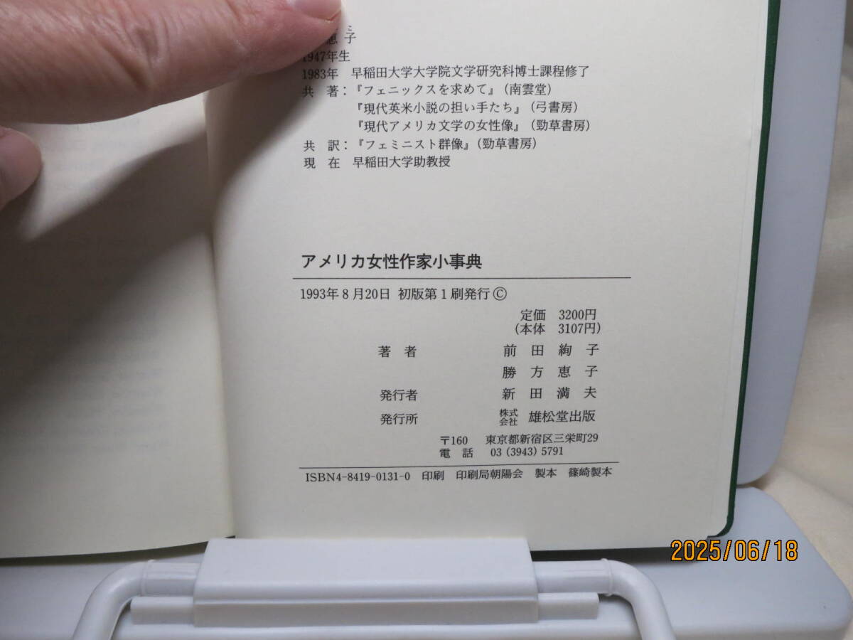 - アメリカ女性作家小辞典 前田絢子 勝方恵子 雄松堂 除籍図書