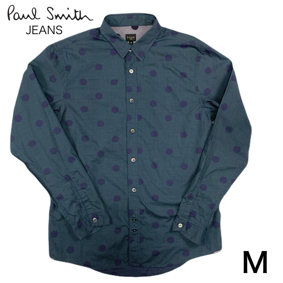 - Paul Smith JEANS ポールスミス 長袖シャツ ギンガムチェック 水玉 総柄 ボタン刻印 グリーン ネイビー M