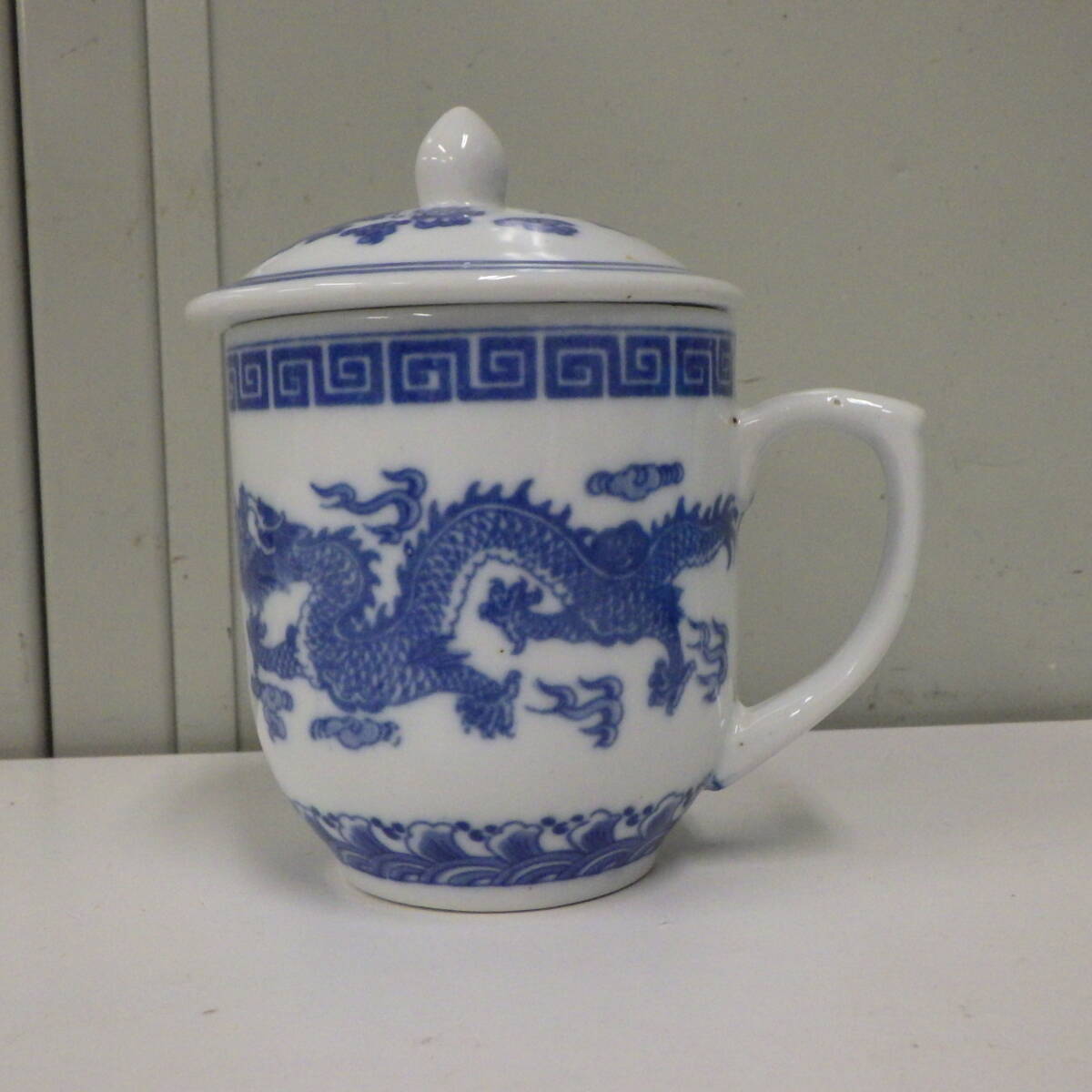 - 昭和 レトロ 蓋付 染付 華芸 中国? 龍柄 辰 竜 お茶 紅茶 ティー 茶器 陶器 工芸品