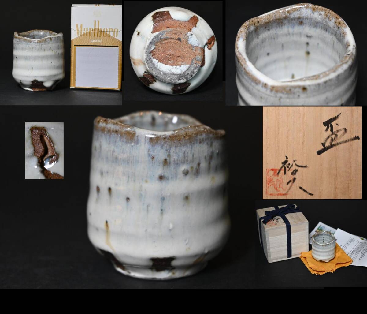 - 榛沢窯■近藤裕久 造■ 盃 共箱・共布・栞付 灰釉 窯変 父・近藤精宏に師事 岐阜県瑞浪市半原生 酒器 酒杯 酒盃 ぐい呑 検:斑唐津 粉引