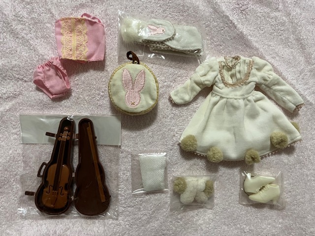 > ブライス ベルベットメヌエット 洋服のみ アウトフィット 着せ替え ワンピース バイオリン 白 ドレス 小物 バッグ 下着 靴