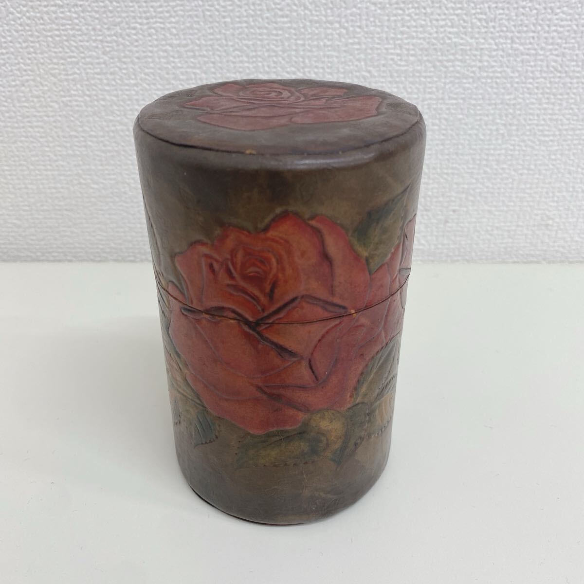 - refle● 本革細工 レザー 薔薇柄の茶筒 茶道具 茶入れ インテリア 現状品