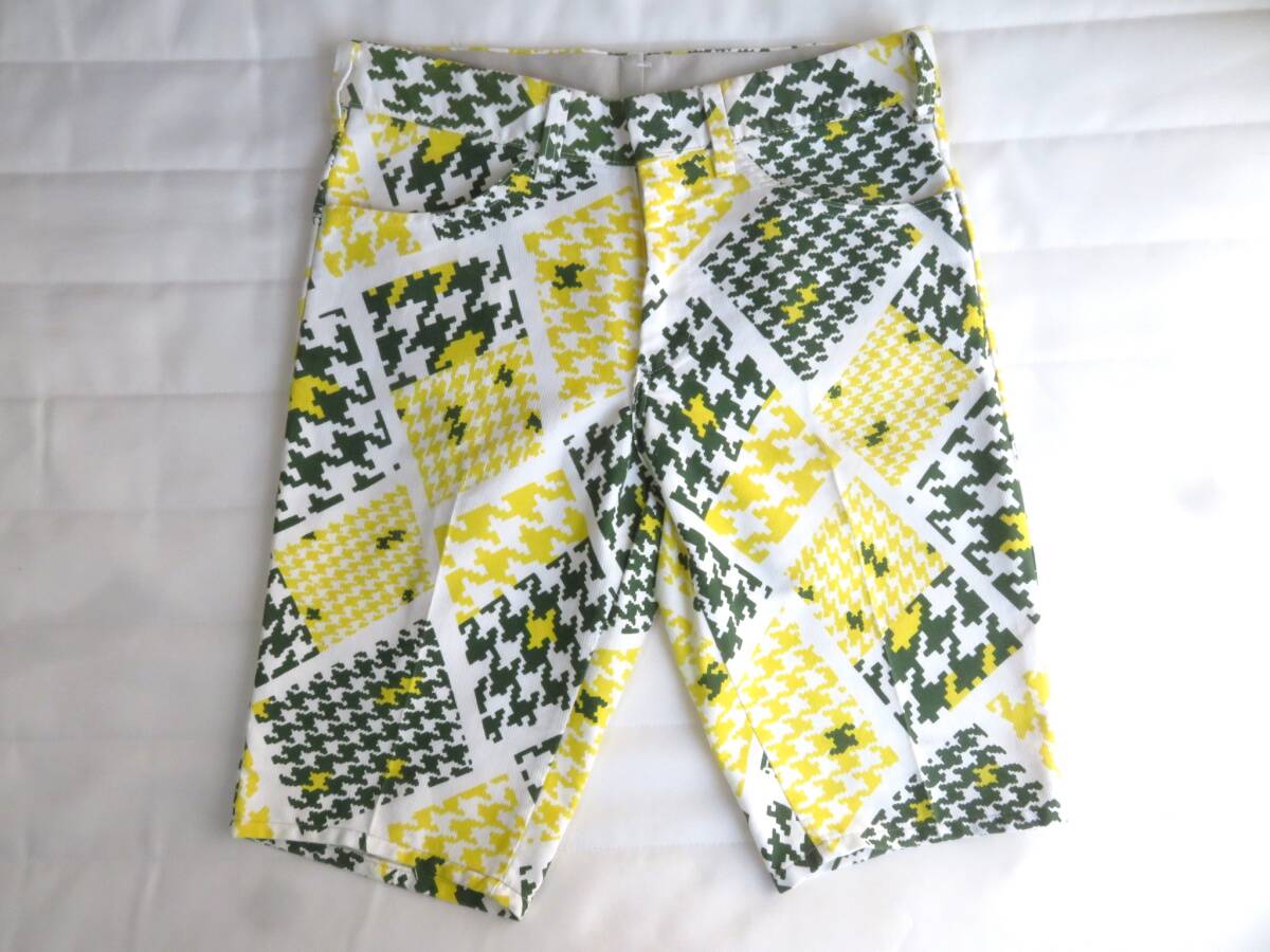 - USA lee LEESURES バミューダパンツ ハーフパンツ 幾何学模様 総柄 黄色緑白 W80CM TALON タロン アメリカ製 米国 ヴィンテージ