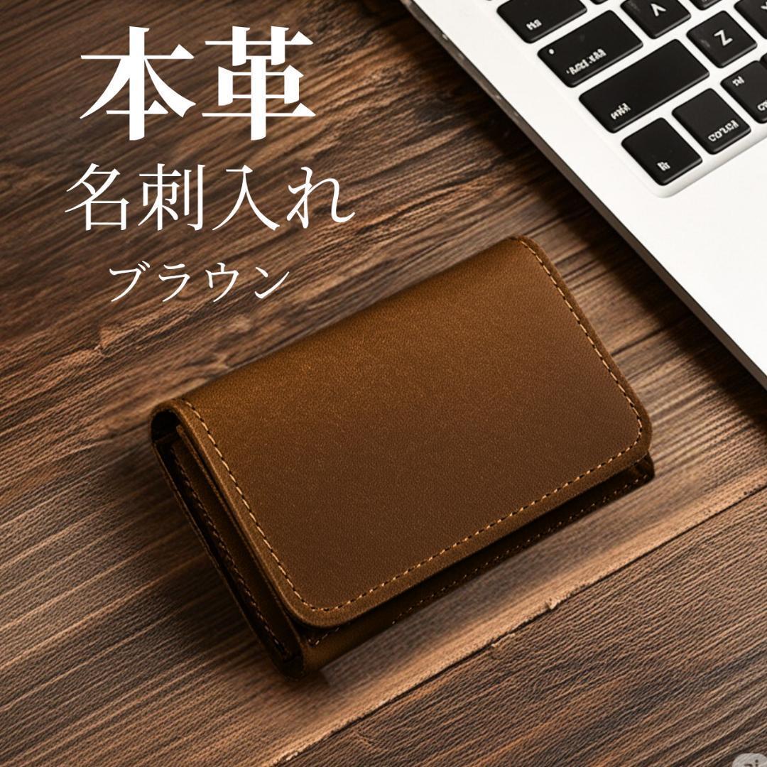 - カードケース 名刺入れ ブラウン 本革 メンズ レディース 牛革 レザー 新品 未使用 二つ折り ビジネス用