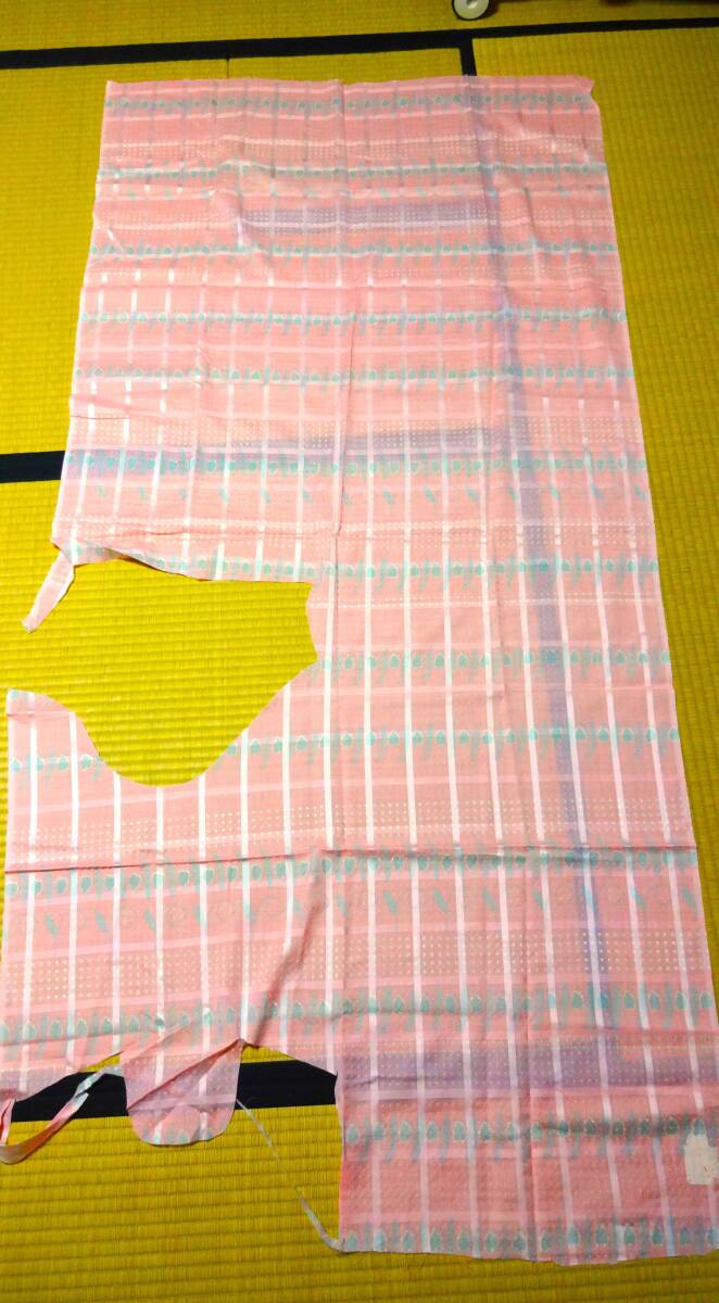 - ピンクに灰色の模様・2mm位ふわっとしたドットがついた素敵な端布(ブラウスに、小さな子供のワンピースに)