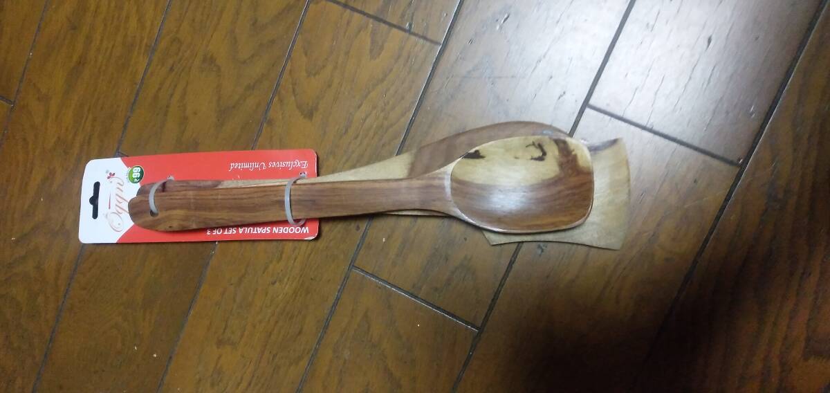 - 天然木製食器 3点セット。へら、スプーン。インド製 新品です。