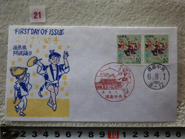 - FDC ふるさと切手 阿波踊り・徳島 2貼2消 解説書有●21●同梱大歓迎