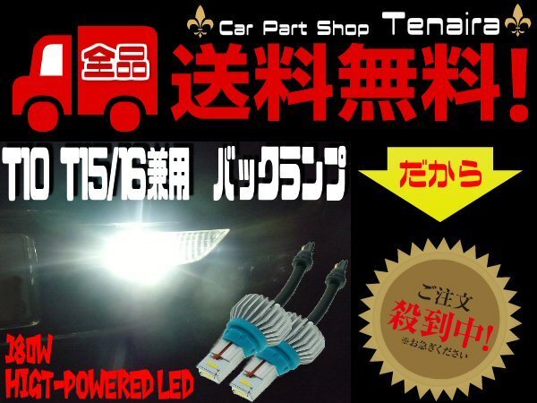 > 12V 24V T10 T15 LED バックランプ 180W級 接触不良対策 プレート端子式 白色 ホワイト 6500k 左右2個セット メール便送料無料/6