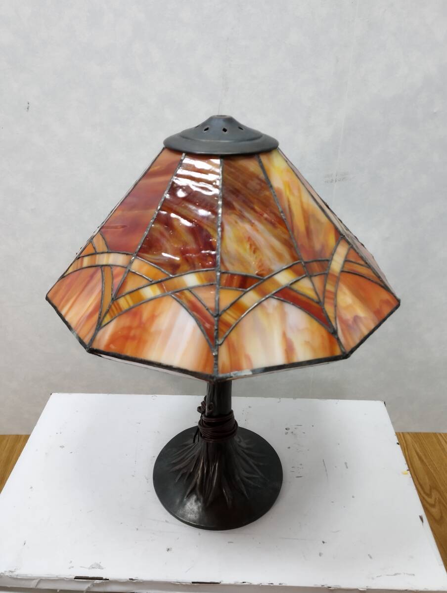 - ★664 メーカー不明 テーブルランプ 3灯 ステンドグラス 現状品
