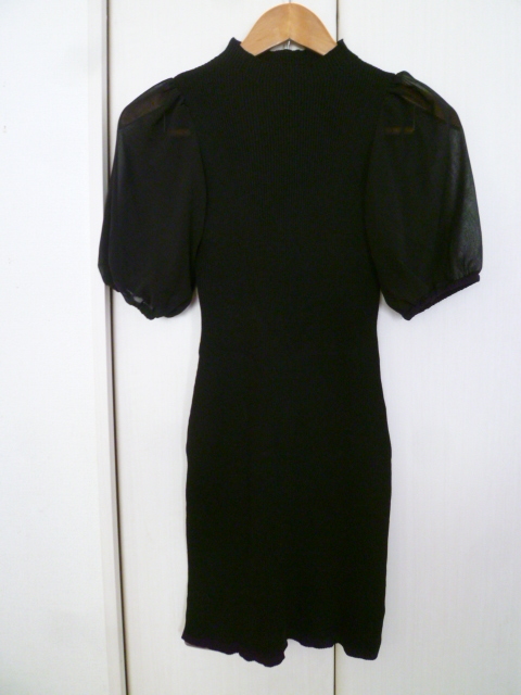 > ANAP/アナップ◇黒縦リブ袖シフォンぽわん袖ボリューム袖ポワン袖ニットワンピースF/ブラックボディコンミニ半袖◇OP728
