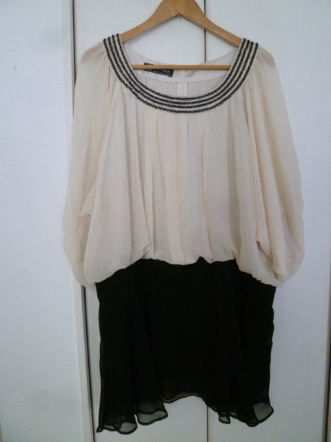 - POUR VOUS/ライトベージュ×黒シフォンフォーマルワンピースXXXL/大きいサイズビックサイズ結婚式パーティー◇OP728
