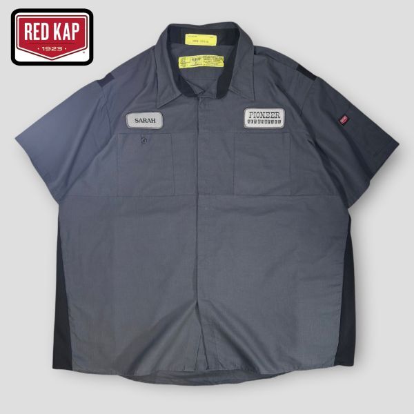 - ★BIGサイズ★PIONEER AUTOMOTIVEロゴ★比翼スナップボタン★RED KAP 半袖ワークオープンシャツ size3XL サイドメッシュ ピスネーム 2275