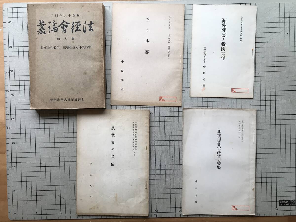 > 北海道帝国大学教授中島九郎関連5冊セット『在職三十年記念論文集』『北海道農業の特質と変遷』『海外発展と我国青年』『米と小麦』他00292