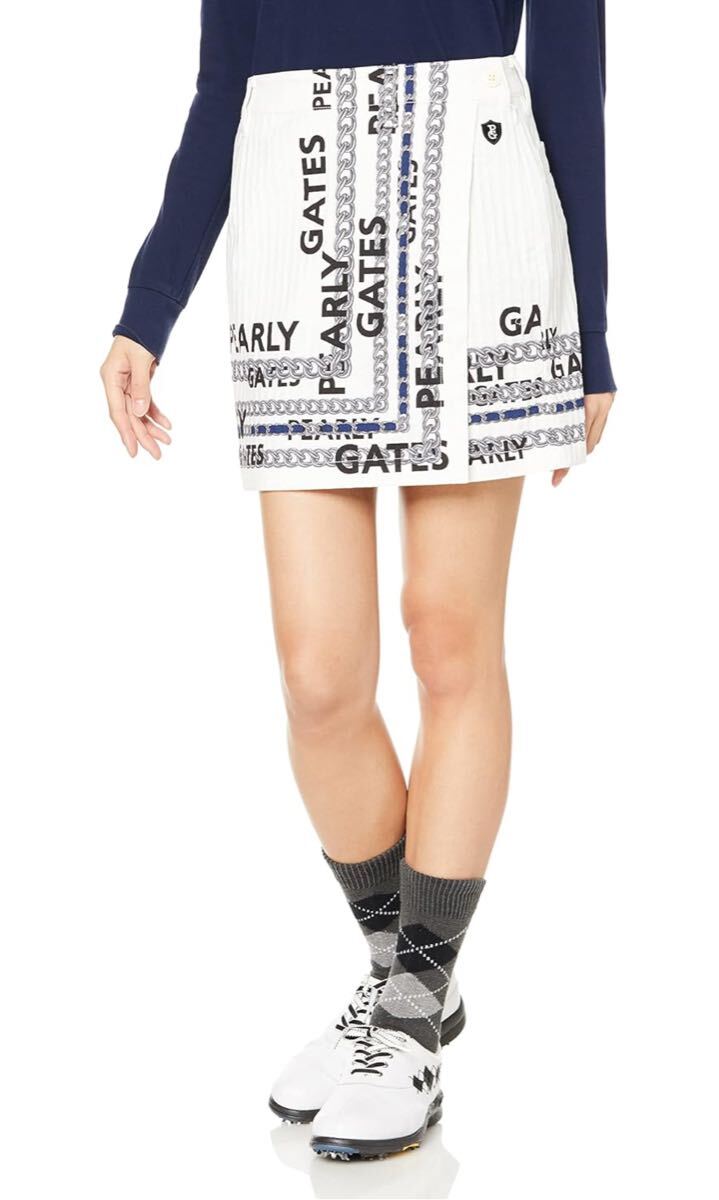 > 新品正規品 パーリーゲイツ サイズ1 高品質 台形スカート 巻きスカート風 ホワイト 真冬以外 カッコいい 送料無料