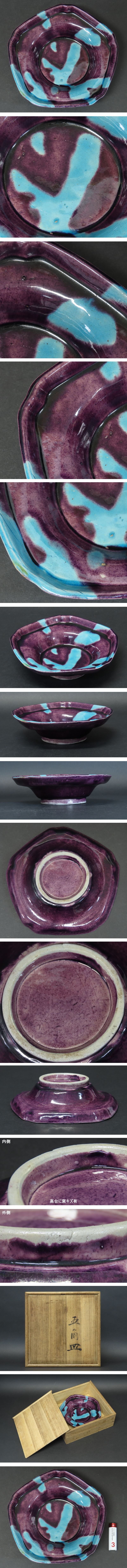> 【月】【骨董品02】切込焼 幻の焼物 二彩五角皿 径:17cm 無傷 江戸時代後期 仙台藩御用窯 / 東北陶磁 切込三彩