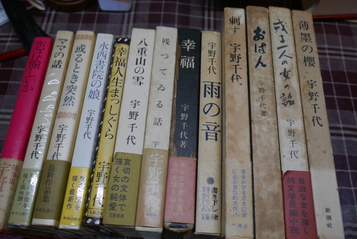 - 宇野千代の本13冊●刺す/ おはん/ 或る一人の女の話/ 薄暮の櫻/ 雨の音/ 幸福/ 残ってゐる話/ 八重山の雪/ 水西書院の娘/ 他