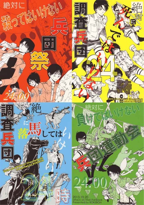 - 進撃の巨人同人誌 ぼけBON発行 「絶対に~いけない24時」 4冊セット オールキャラ エレン リヴァイ ハンジ ミカサ ジャン サシャ