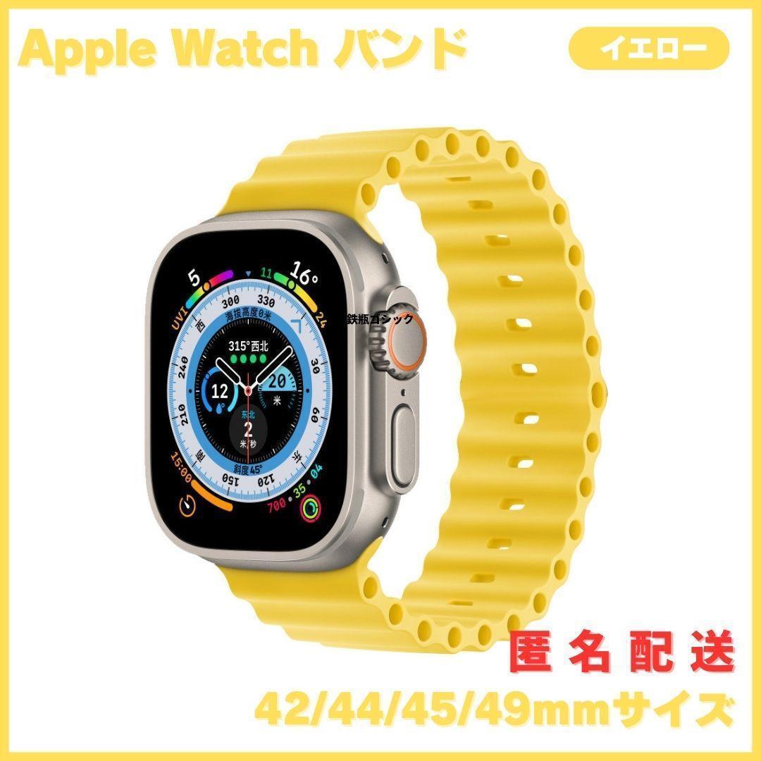> アップルウォッチバンド Apple Watch band オーシャンバンド風 スポーツ 42㎜/44㎜/45㎜/49㎜ 共通サイズ 黄 イエロー シリコン 互換品