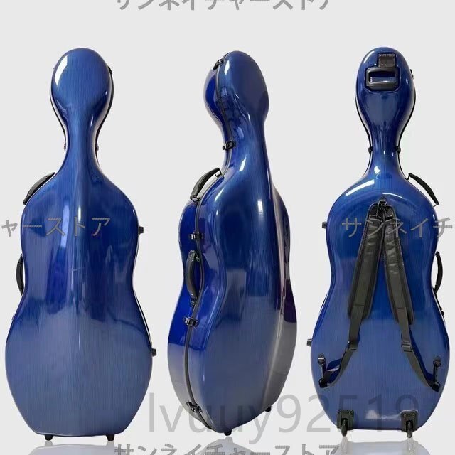 > カーボンコンポジットケースは、バックパックとホイールを備えた4/4サイズのチェロに適合します 青です