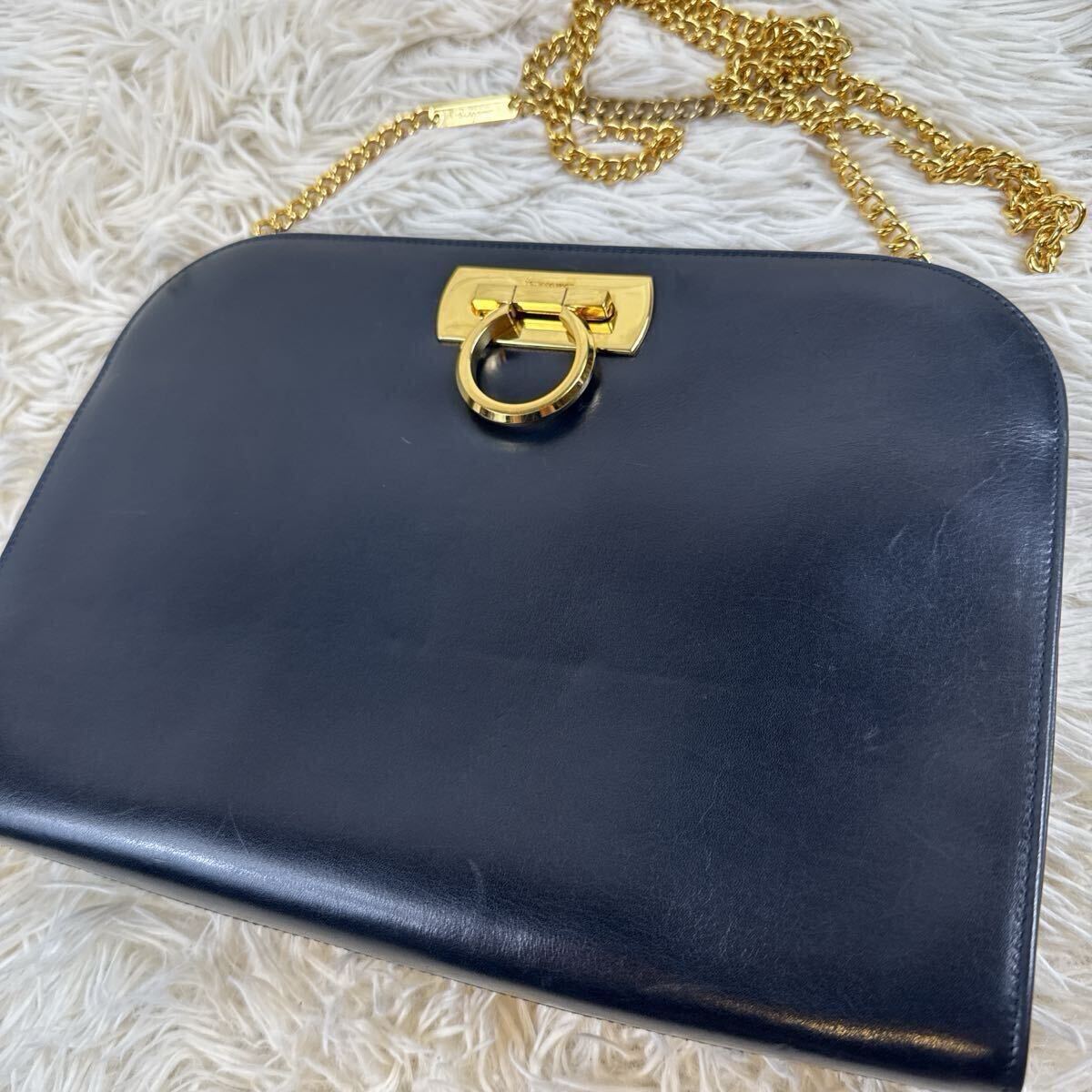 - Salvatore Ferragamo フェラガモ ガンチーニ レザー チェーン ショルダー バッグ ネイビー