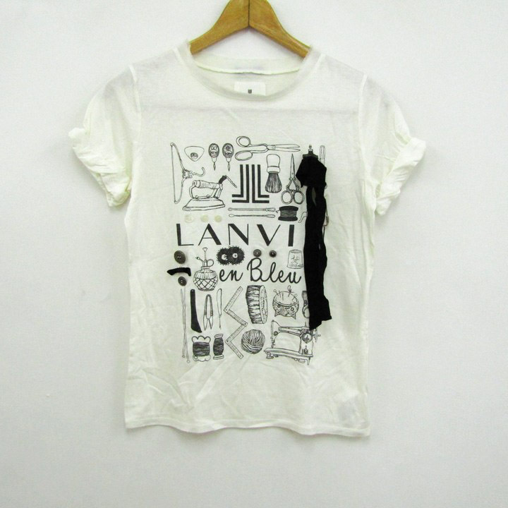 > ランバンオンブルー 半袖Tシャツ クルーネック リボン トップス レディース 38サイズ ホワイト系 LANVIN en Bleu