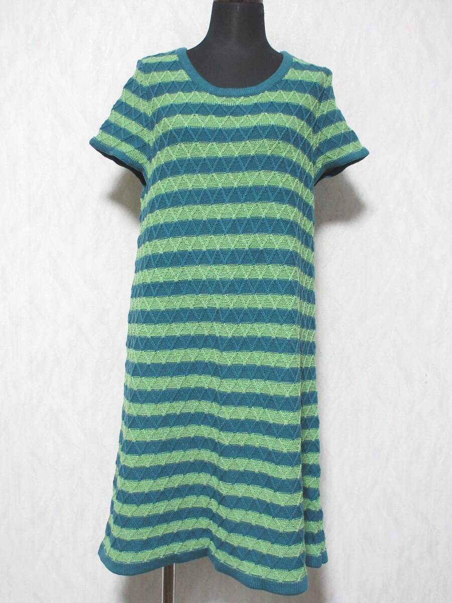 - Jocomomola ホコモモラ シビラ ボーダー 半袖 ニット ワンピース レディース 40 グリーン系 kn2478