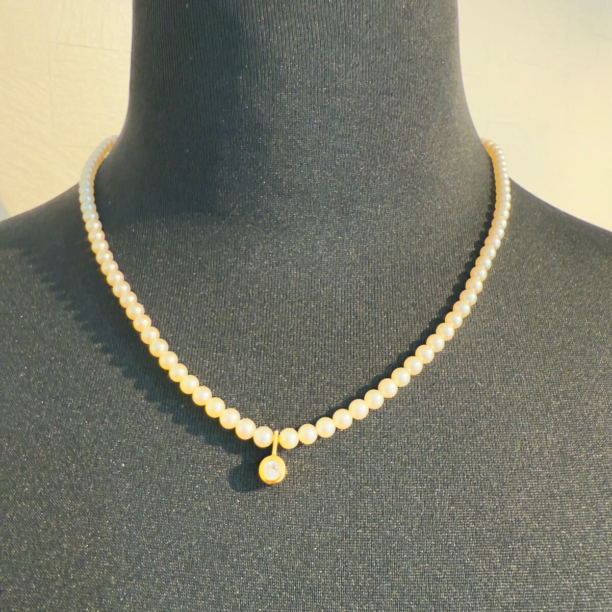 - ●H7-6-129 パール ダイヤ K18 ネックレス 3.7mm