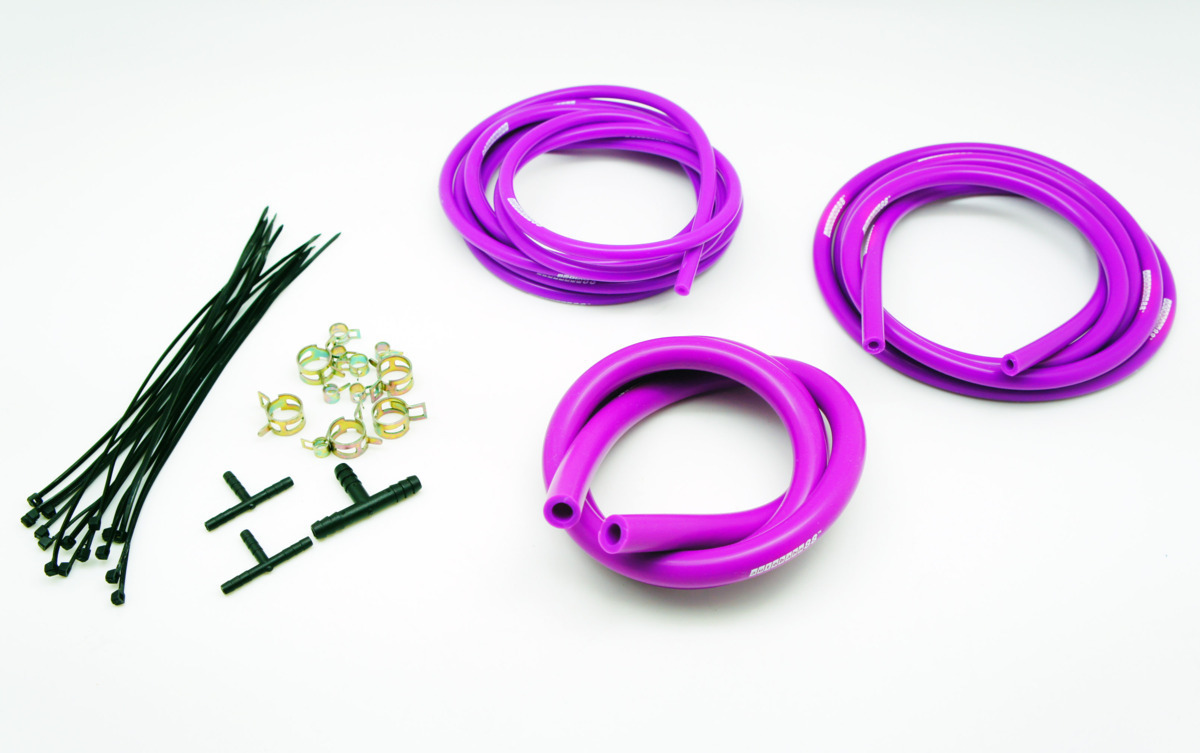 - シリコンバキュームホース3サイズ計6M ジョイント+クランプ+タイラップ セット 紫